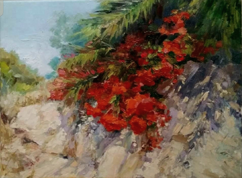 “It’s so nice to see red flowers on a hot rocks with afternoon sunset”